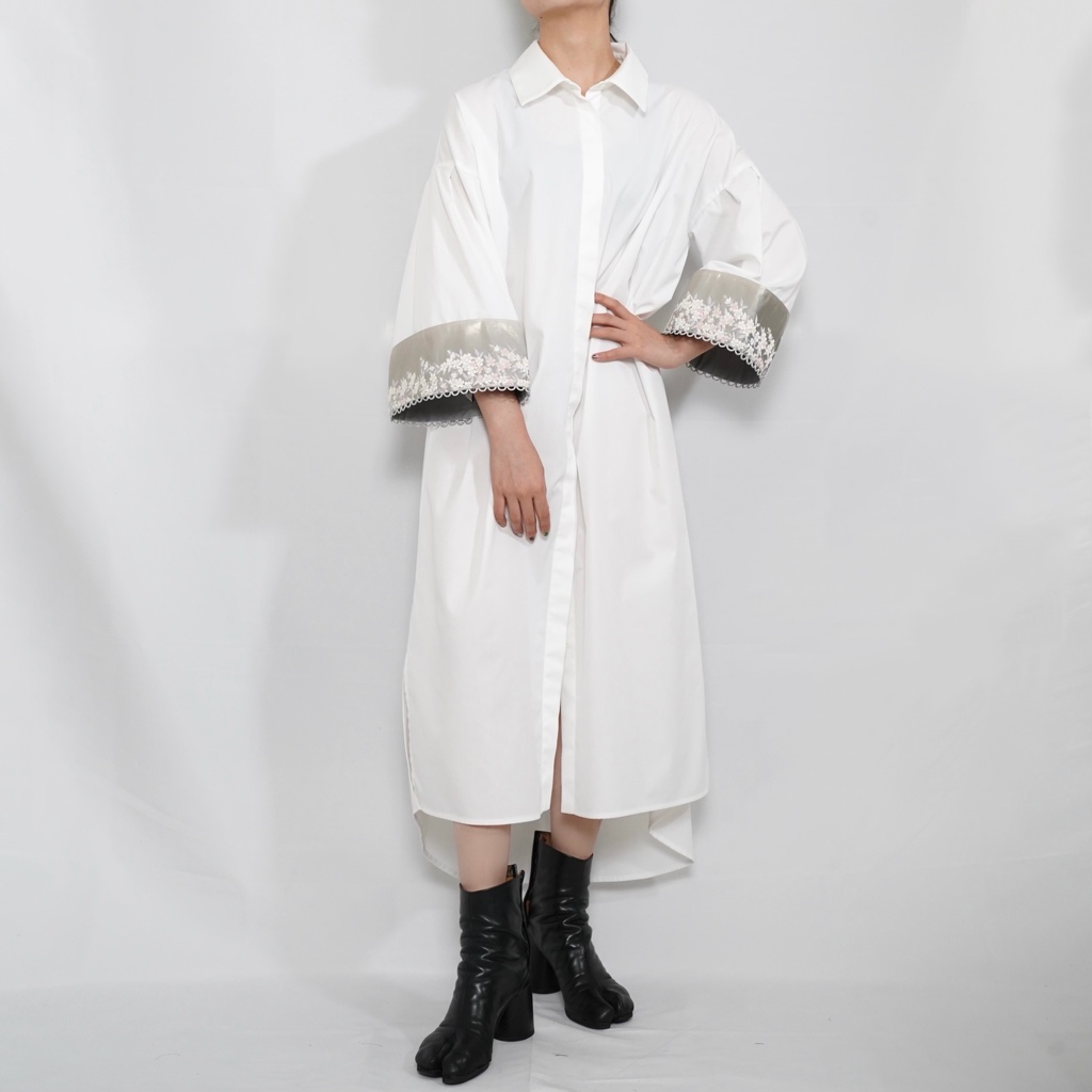 帯のカフスとシャツのカフスが取り外しでき、着こなしの変化ができるオーバーブラウスです。
