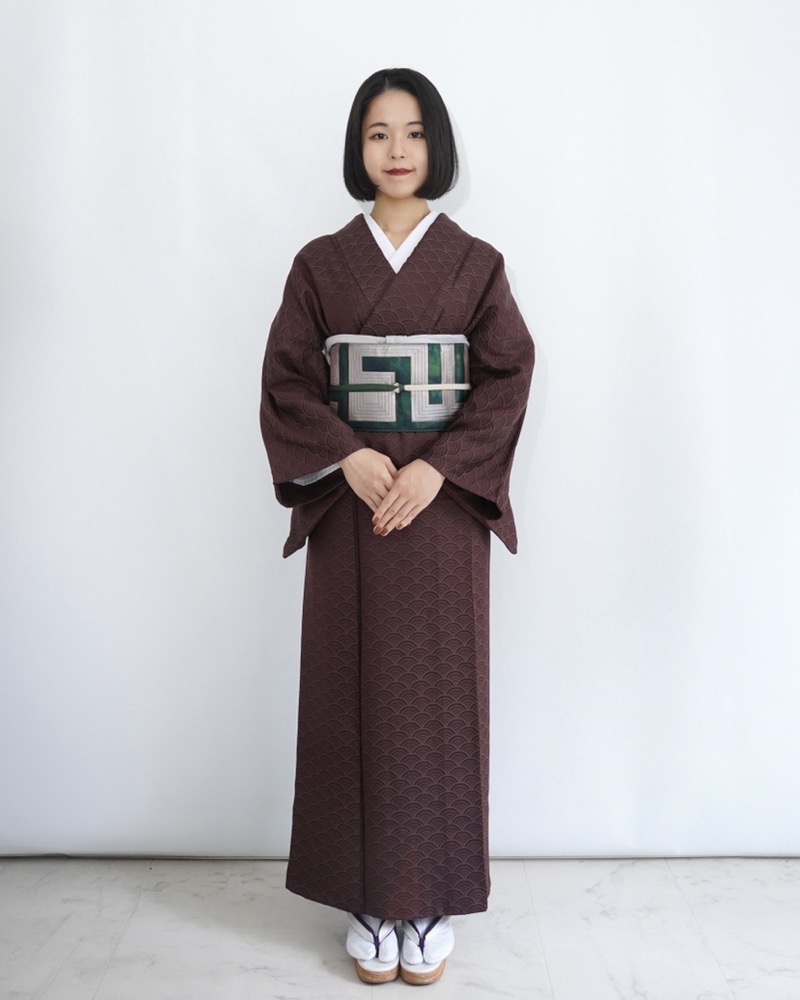 生地:絹100%(正絹)地模様に青海波が織り出されています。